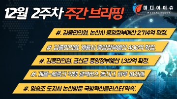 [정치] 김종민 의원, 지역구 예산 대거 확보 ‘낭보’ 더불어민주당 김종민 국회의원이 논산과 계룡 금산의 정부예산 4,453억원과 하반기 특별교부세 58억원을 확보했다는 소식을 전했습니다. 이번 예산확보로 인해 각 지역구 현안사업 해결에 적극 활용될 것으로 전망되고 있는데요, 먼저 논산 예산 확보의 구체적 내용을 보면 국방 교육·연구 클러스터 조성 연구 용역 2억원, 호남선 직선화 고속화사업 기본계획수립비 5억원, 논산 양촌면 인천지구 면단위하수처리장 설치 14억원, 육군 신병훈련소 병영생활관 개선 30억원, 육군 신병훈련소 취사식당 신축 3억원, 국가하천정비사업 345억원, 논산시 소각시설 설치 12억원, 연산 두마 국도대체 우회도로 건설 242억 3천만원, 한센병 간이양로시설 운영 2천만원, 농촌유학 지원 3천만원 등입니다. 또한 하반기 특별교부세는 은진면 시묘리 위험도로 개선공사 10억원, 방범용 cctv 신규 설치사업 5억원, 인천교 보수보강공사 3억원, 강경 유교문화 테마공원 조성사업 3억원 등이 포함됐습니다. 다음 계룡지역 주요 예산확보 사업을 보면 계룡시 생활자원회수센터 확충 2억 7천만원, 국방 교육 연구 클러스터 조성 연구 용역 2억원, 호남선 직선화 고속화사업 기본계획수립비 5억원, 계룡 청소년 복합문화센터 29억원, 고택종갓집활용사업 1억 3천7백만원, 신중년 경력형 일자리사업 1억 3천 7백만원, 지역사랑상품권 발행 지원 1억 9천2백만원, 가족센터조성 4억 5천만원, 계룡시 소각시설 2억 4천만원, 연산 두마 국도대체 우회도로 건설 242억 3천만원, 어도개보수사업 1억 3천만원, 국민체력100 사업 3억 3천만원입니다. 계룡시 하반기 특별교부세는 총 17억원으로 엄사리 주거지주차장 조성 7억원, 도곡리 도시계획도로 개설 5억원, 상원천 오수관로 정비 5억원 등이 포함됐습니다. 마지막으로 금산 지역은 금산 진산 국지도건설 2억원, 금산 지식산업센터 건립 10억원, 응급의료 고도취약지원 지원 1억 2천만원, 세계중요 농업유산 보전관리 1억 4천만원, 남일 금산 국도건설 32억 4천만원, 도시재생사업 40억 5천만원, 성장촉진지구 개발 지원 41억 5천만원, 미세먼지 저감 차단숲 조성 20억원, 체육진흥시설 건립 16억 5천9백만원, 묘목생산 2억 7천만원, 비점오염 저감사업 44억 9천만원, 개발제한구역 주민지원 5억 1천만원, 어도개보수사업 1억 3천만원이 중앙정부 예산에 포함됐습니다. 이어 금산군 하반기 특별교부세는 총 20억원으로 진산면 체육센터 조성 5억원, 금산군 노후 하수관로 정비사업 6억원, 범죄예방 방범용 cctv 확대 설치 사업 5억원, 봉황천 제방 보수 보강 4억원 입니다. 한편 김종민 의원은 이번 논산, 계룡, 금산 정부예산 확보는 제 혼자만의 힘이 아닌 충남도와 각 시군이 합심해서 이러낸 성과라며 각 지역의 도로인프라를 포함 현안사업 해결에 사용될 예산이 확보됐다는 점에서 그 의미가 크다고 전했습니다. [계룡] 계룡~세종 직행 광역버스 생긴다 계룡시에서 세종시로 가는 직행 광역버스 3002번이 신설됩니다. 이번에 신설된 광역버스는 계룡시청에서 공주 학봉 삼거리를 거쳐 세종시외버스터미널까지 하루 왕복 18차례 운항하게 됩니다. 특히 그동안 계룡에서 세종까지 대중교통을 이용해 가려면 2시간이 넘게 소요됐지만 이번 광역버스 개통으로 소요시간이 50분 이내로 단축될 것으로 보입니다. 한편 최홍묵 시장은 이번 광역버스 노선 개설로 대한민국 국방의 중심 계룡시와 실질적인 대한민국 행정수도인 세종시 간 접근성이 강화될 것이라며 두 도시 간 상생발전이 가속화될 수 있도록 다양한 분야에서의 협력을 강화해 나아가겠다고 밝혔습니다. [논산] 양승조 도지사 논산 방문, 국방혁신클러스터 ‘약속’ 양승조 충남도지사가 지난 9일 논산을 방문해 성공적인 국방국가산업단지 조성 및 육사유치를 바탕으로 전국 최초의 국방혁신클러스터 구축에 힘을 합치겠다고 밝혔습니다. 이날 논산아트센터를 방문한 양 지사는 황명선 논산시장과 논산시의회 의원, 사회단체장, 시민 등이 참석한 가운데 도정 보고와 시민과의 대화, 도정 질의응답 등을 가졌습니다. 이 자리에서 양승조 지사와 황명선 시장은 성공적인 육사 유치를 통해 다양한 국방기관을 효율적으로 집적화하고, 논산을 국방의 거점도시로서 발전시킬 것을 다짐했습니다. 한편 양승조 도지사는 민선7기 공약으로 제시했던 국방국가산단 예비타당성 조사 통과와 국방벤처센터 설립 등 국방혁신도시 조성을 위한 밑그림이 그려졌다라며 관련 국방기업 등을 적극적으로 유치하여 자주국방을 위한 국방클러스터가 조성될 수 있도록 최선을 다하겠다고 전했습니다.