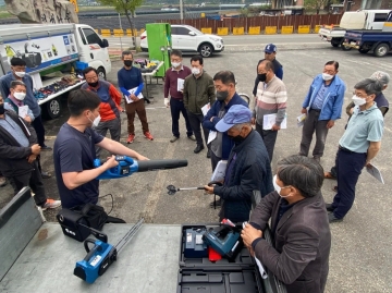 이날 교육과 함께 안전장비 시연회도 개최해 지주목 설치를 위한 항타기, 전동 안전톱, 안전보조구 등 장비별 소개 및 사용 방법을 전달하고 각 업체별 장비를 비교분석하는 시간을 가졌다.
