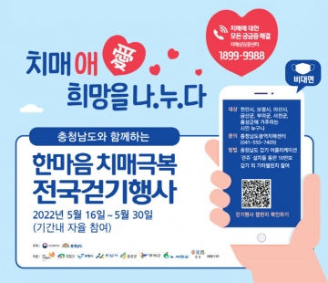 [충청와이드뉴스] 금산군은 일상생활 속 걷기를 실천하며 치매에 대한 주민 인식 개선을 위해 16일부터 오는 30일까지 한마음 치매극복 걷기행사를 개최한다.