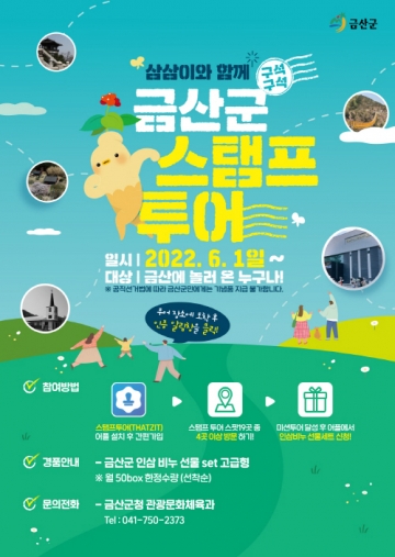 [충청와이드뉴스] 금산군은 관내 잘 알려지지 않은 관광명소 활성화를 위해 6월 1일부터 삼삼이와 함께 구석구석 모바일 스탬프투어를 전개한다.