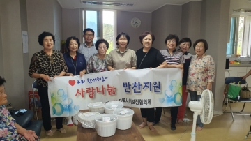 협의체 위원들이 손수 준비한 올갱이 된장국, 오이무침, 멸치볶음, 장조림 등 정성이 담긴 반찬과 함께 어르신들 얼굴 마사지와 혈압측정도 병행해 밑반찬을 전달하며 소외 계층의 건강과 안부를 살폈다.