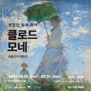 [충청와이드뉴스] 논산문화관광재단(대표이사 지진호)은 연산문화창고 4동 다목적홀에서 오는 6월 1일(토)부터 7월 21일(일)까지 약 두달간 클로드 모네 레플리카 전시를 연다.