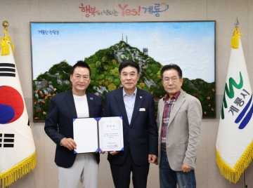 [충청와이드뉴스]계룡시(시장 이응우)는 20일 시장실에서 (사)한국산림탄소협회 관계자들과 간담회를 갖고 산림을 활용한 탄소중립 실현 방안을 논의했다.